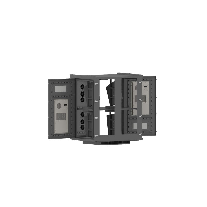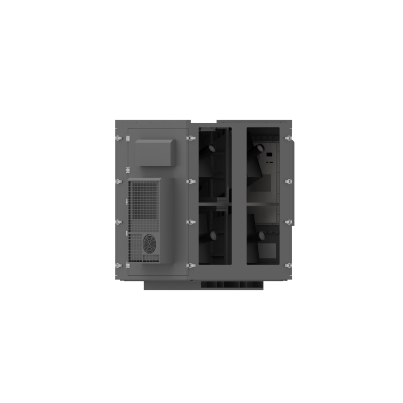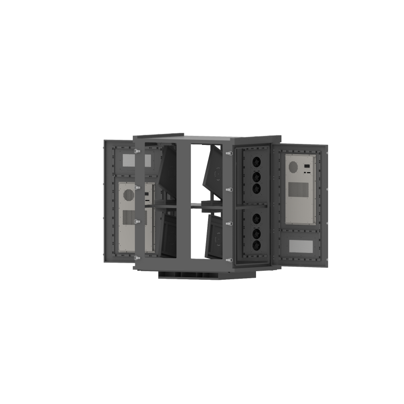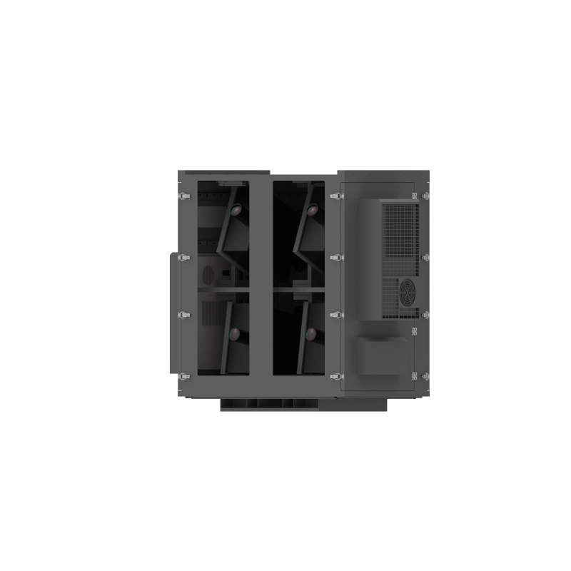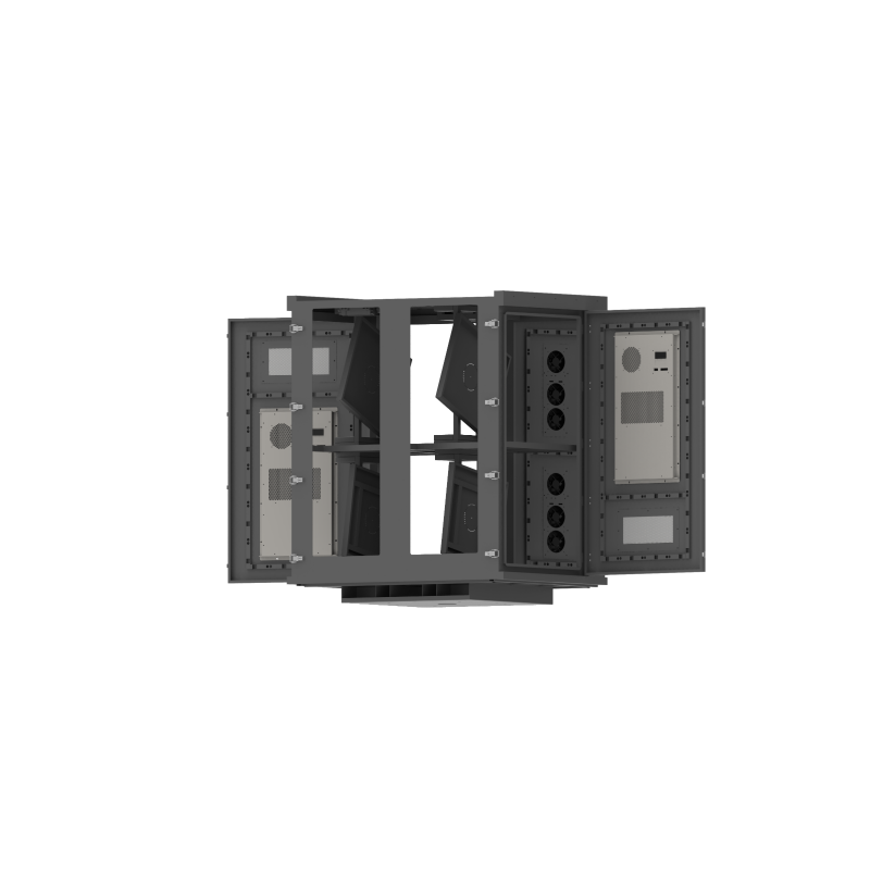 The cabinet’s outer shell is fabricated from heavy‑gauge galvanized steel—or optionally stainless steel—with thicknesses typically between 1.2 mm and 4 mm, depending on the model. Surface treatment includes putty filling, mechanical sanding, outdoor powder coating and baking, ensuring corrosion resistance, anti‑static behavior and long‑term durability. Internally, it features a smart test & control board with Meanwell switching power supply, built‑in temperature and humidity sensors, a three‑mode cooling system with three adjustable fans (each up to 5 m³/min airflow), and a heating/dehumidification module that activates under low‑temperature or high‑humidity conditions. The projector platform supports linear angle adjustment (up to 10° standard), and the projection window uses ultra‑white optical glass with approximately 95% light transmittance to preserve image brightness and clarity. With IP65 waterproof certification and customizable options for size, color and configuration, this enclosure is a turnkey solution for outdoor professionals deploying high‑lumen laser or lamp projectors.