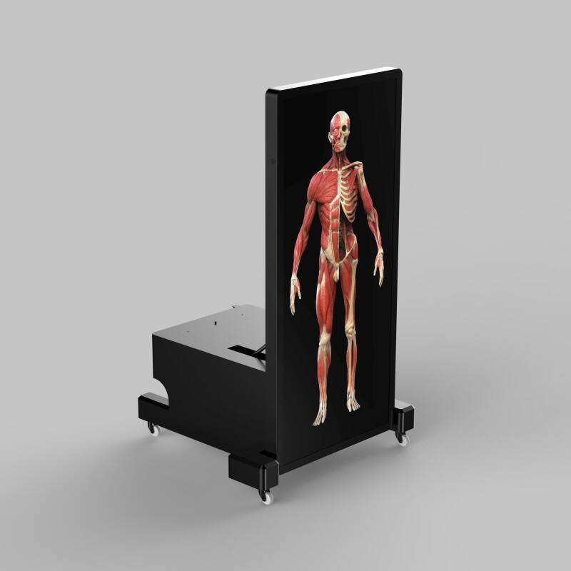 - 3D virtual cadaver dissection with unlimited exploration angles. The display screen can be raised and lowered vertically and can be reversed 90 degrees.